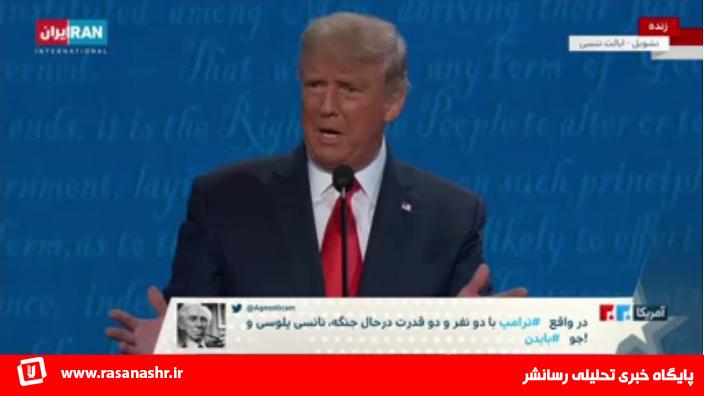 توییت های یک سویه و آمار نظرسنجی فیک ایران اینتر نشنال در زمان پخش زنده مناظره دو نامزد دموکرات و جمهوری خواه آمریکا در نوع خود بی نظیر بود. این شبکه با انتشار این توییت ها به نفع ترامپ و نظرسنجی به ضرر بایدن به گونه ای وانمود می کرد که ایرانیان تمایل دارند ترامپ در قدرت باقی بماند!