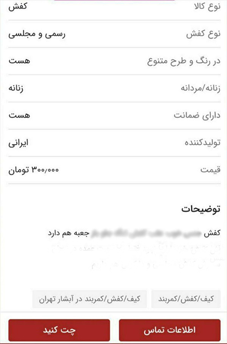 این خبرگزاری به فروش کفش و اجاره خانهها برای چند ساعت اشاره داشته و در ادامه این گزارش آورده است: «کاربران سودجو در سایت دیوار با ارائه فروش یک کفش جلوباز و استفاده از عبارتهای خاص در تبلیغ سعی میکنند تا خدمات خود (تن فروشی) را بهصورت پنهان ارائه دهند.»