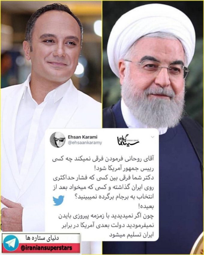 بازیگر و مجری سینما و تلویزیون به اظهارات رییس جمهور مبنی بر اینکه بایدن یا ترامپ برای ما فرقی نمیکند، واکنش نشان داد.
