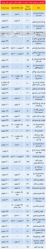 خانه / اقتصادی / قیمت اجاره در شمال و جنوب پایتخت/ جدول قیمت اجاره در شمال و جنوب پایتخت/ جدول تیم تحریریه ۲۶ آبان ۱۳۹۹ اقتصادی تحقیقات میدانی از فایلهای بازار اجاره در مناطق مختلف و مقایسه دو نیمهجنوبی و شمالی پایتخت نشان میدهد این روزها متقاضیان بازار اجاره در مناطق جنوبی بعضا با کمبود فایل و محدودیت در انتخاب واحد مسکونی مدنظر مواجه هستند. بررسی این محتوا با هوش مصنوعی مطالب مرتبط آغاز عرضۀ بنزین سوپر از امروز پنج شنبه در تهران (+آدرس جایگاه ها) / هرلیتر بالای ۷۰ هزار توماناسکناس جدید ۱ ریال عمان: گرانترین پول جهان وارد بازار میشودرستورانها به «غذای اقتصادی» روی آوردند: چلوکباب ۲۹۰ هزار تومانی! برچسبها: بازار مسکنتهرانقیمت اجاره مسکنقیمت مسکن