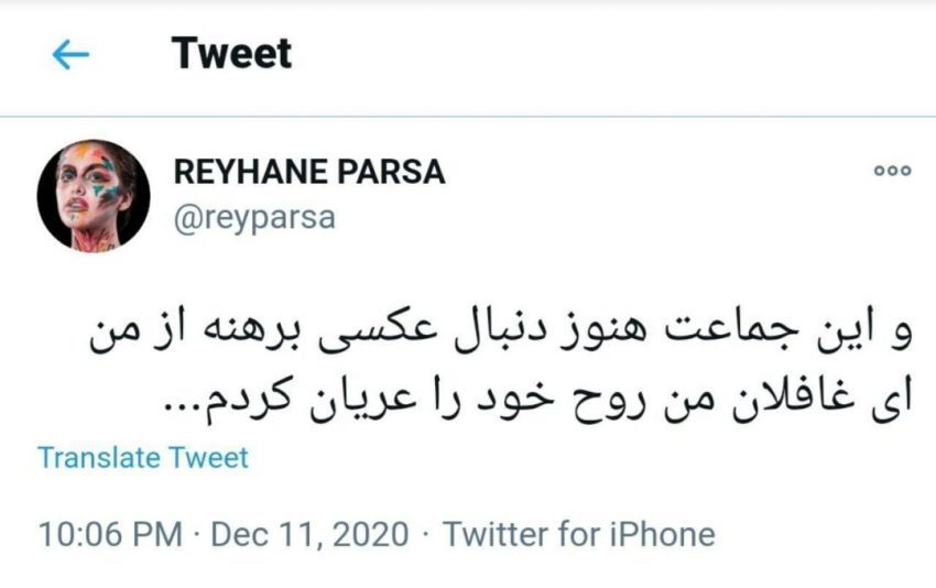 خانه / فرهنگ و هنر / توییت جدید ریحانه پارسا خطاب به کسانی که دنبال عکسی برهنه از او میگردند توییت جدید ریحانه پارسا خطاب به کسانی که دنبال عکسی برهنه از او میگردند تیم تحریریه ۲۲ آذر ۱۳۹۹ فرهنگ و هنر توییت جدید ریحانه پارسا خطاب به کسانی که دنبال عکسی برهنه از او میگردند ریحانه پارسا خطاب به کسانی که دنبال عکس برهنه از او میگردند، نوشت: من روح خود را عریان کردهام. بررسی این محتوا با هوش مصنوعی مطالب مرتبط عنایت بخشی در بیمارستان: آخرین خبرها از وضعیت سلامتی بازیگر پیشکسوتترانه علیدوستی: یک سال پنهان شدم و خودم را هم نمیشناختماشتباهات رایج در خرید سنتور که جلوی پیشرفت شما را میگیرد برچسبها: بازیگر سینماریحانه پارسا