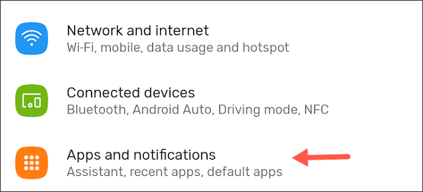 ۲) از فهرست تنظیمات، روی گزینه Apps and Notifications کلیک کنید.