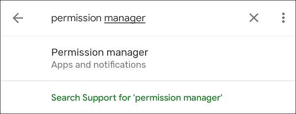۴) اگر این گزینه را در تلفن Android خود پیدا نکردید، (زیرا هر دستگاه بسته به سازنده خود تنظیمات مختلفی دارد)، به جای مدیر مجوز، از نوار جستجو در بالای منوی تنظیمات، مدیر مجوز را جستجو کنید.