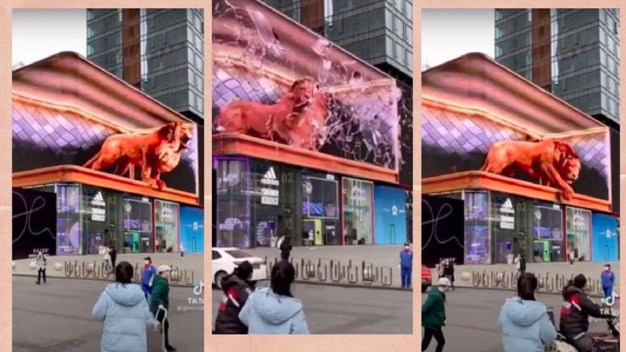 یکی از این نمایشگرهای سه بعدی در منطقه «چنگدو» چین نصب شده است. در ویدئویی که از این نمایشگر تهیه و در تیک تاک منتشر شده است شیری را نشان میدهد که بسیار واقعی به نظر میرسد. کیفیت فناوری خیره کننده این نمایشگر ۳ بعدی آنقدر بالاست که در صحنهای از این فیلم افرادی که به تماشای شیر نشسته اند با غرش و پرش آن اقدام به فرار میکنند.