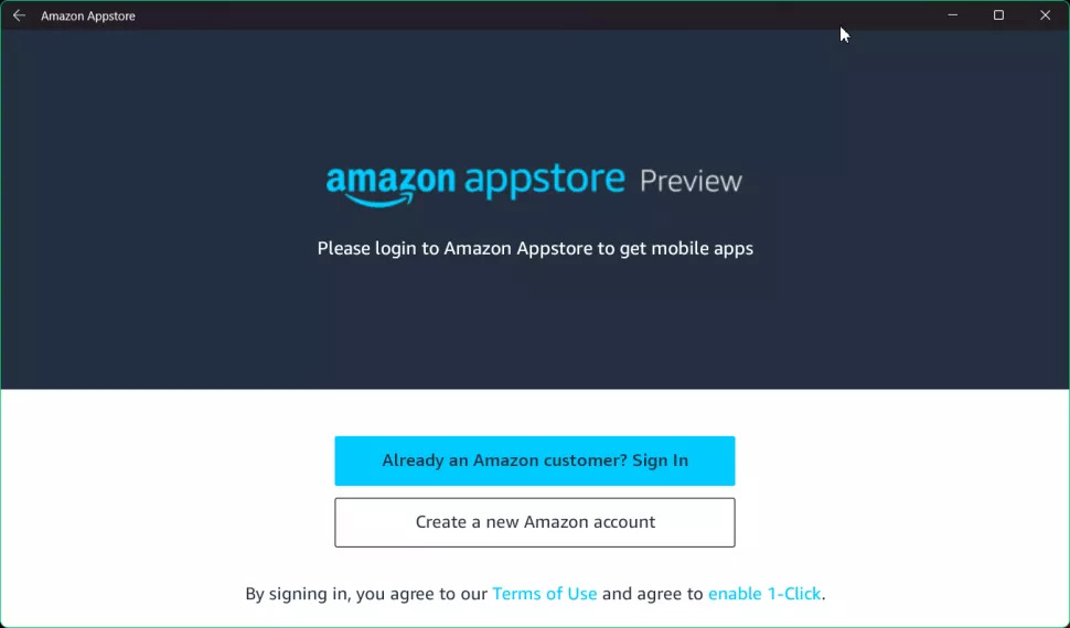 ۶. روی Open Amazon Appstore کلیک کنید. صفحه ای با اعلان ورود به سیستم آمازون روی آن باز می شود.