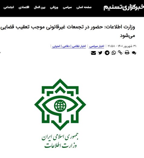 وزارت اطلاعات : حضور در تجمعات غیرقانونی موجب تعقیب قضایی میشود
