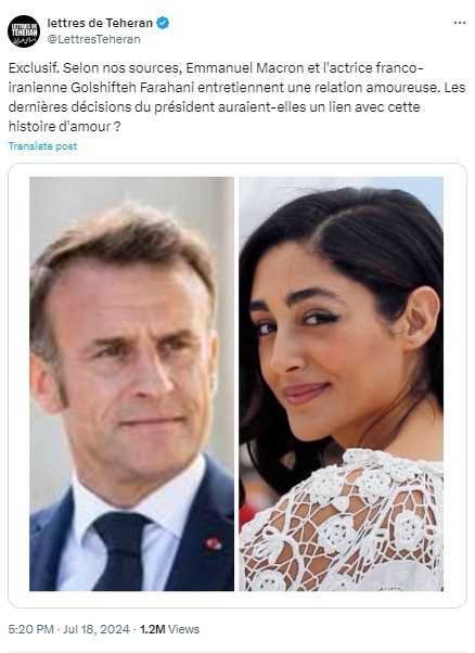 نمیتوان ادعای مطرح شده درباره رابطه گلشیفته فراهانی و مکرون را تائید کرد اما این شایعه حسابی فضای شبکههای اجتماعی را پر کرده است.
