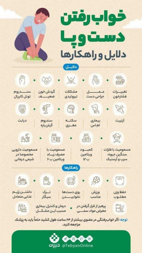 در این اینفوگرافی با دلایل و راهکارهای خواب رفتن دست و پا آشنا شوید.