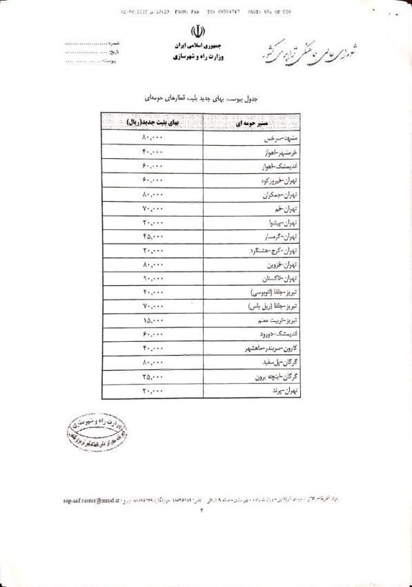 قیمت جدید بلیتها از اول تیر ماه اعمال میشود