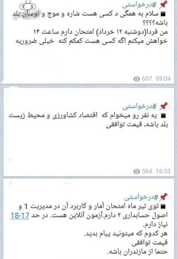 این روزها آگهیهای همیار و کمک برای حضور در امتحانات آنلاین، به لیست متعدد خدمات غیرمعمول اضافه شده است. خدمت جدیدی که در آن دانشجویی برای ساعت امتحان آنلاین، دانشجوی دیگری را به کمک میگیرد و قیمت این خدمت هم توافقی تعیین میشود.
