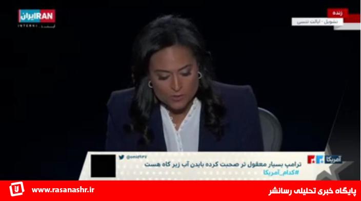 توییت های یک سویه و آمار نظرسنجی فیک ایران اینتر نشنال در زمان پخش زنده مناظره دو نامزد دموکرات و جمهوری خواه آمریکا در نوع خود بی نظیر بود. این شبکه با انتشار این توییت ها به نفع ترامپ و نظرسنجی به ضرر بایدن به گونه ای وانمود می کرد که ایرانیان تمایل دارند ترامپ در قدرت باقی بماند!
